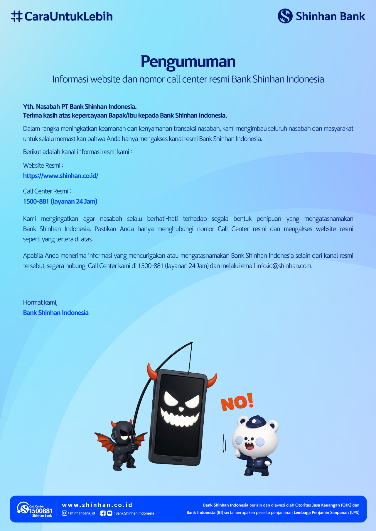 Informasi Website dan Nomor Call Centre Resmi Bank Shinhan Indonesia