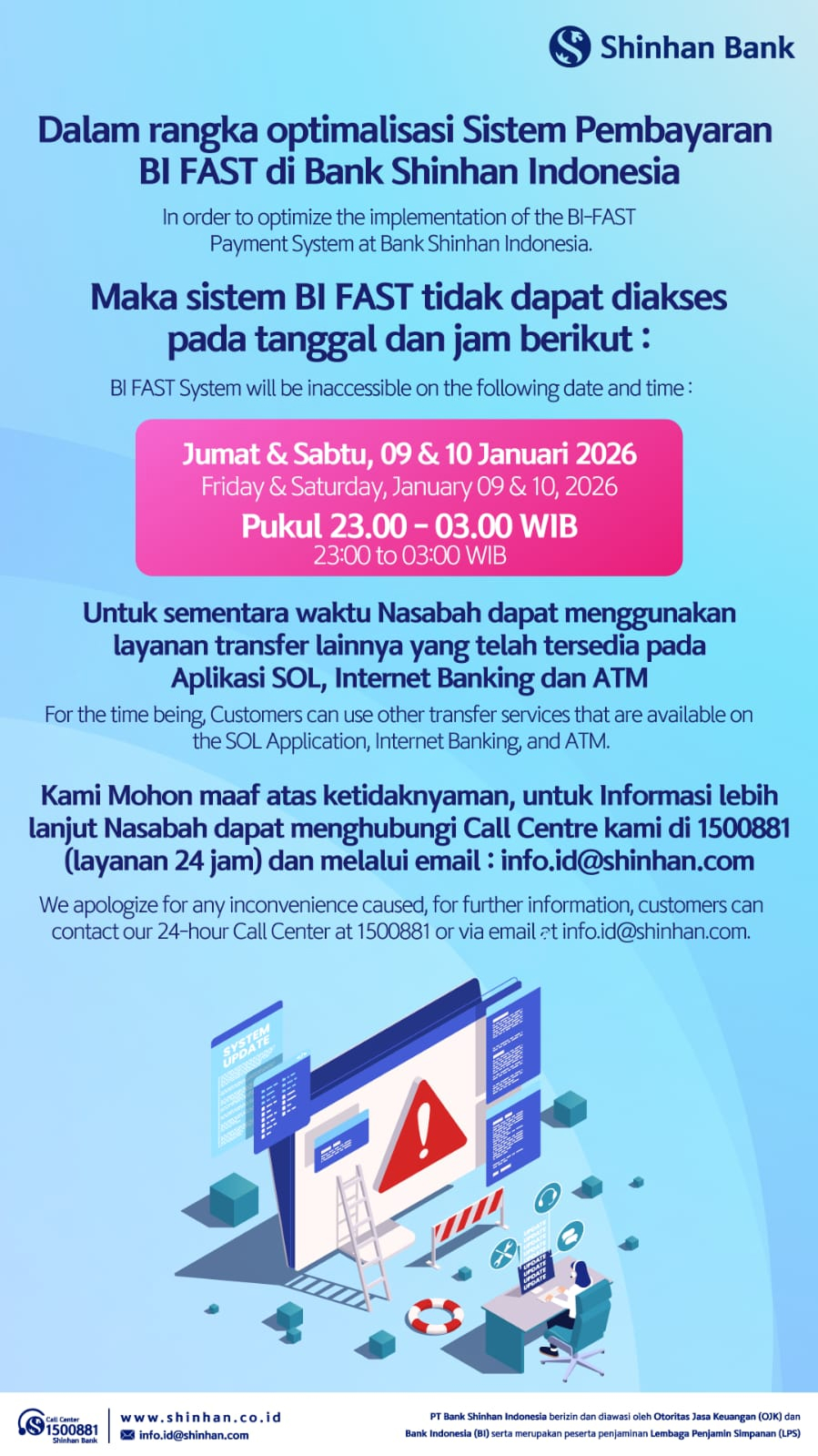 Informasi Jadwal Maintenance Bank Shinhan Indonesia