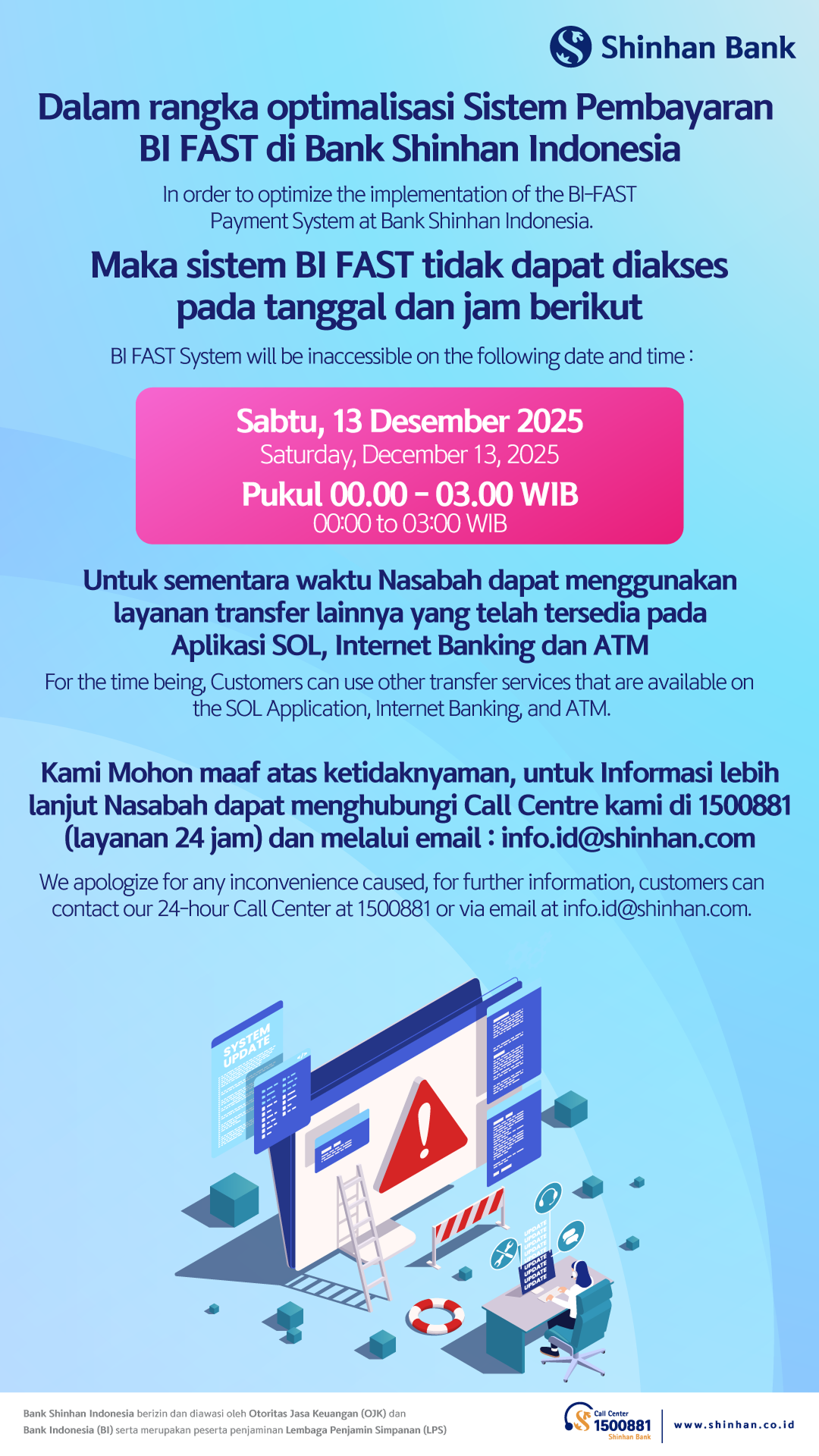 Informasi Jadwal Maintenance Bank Shinhan Indonesia