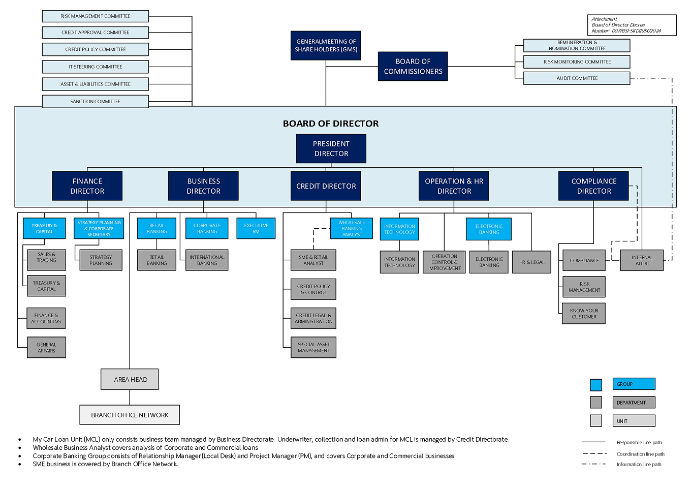 Struktur organisasi Bank Shinhan Indonesia dirancang untuk mendukung tata kelola perusahaan yang efektif, transparan, dan akuntabel. Pembagian peran antara Direksi, Dewan Komisaris, dan komite pendukung memastikan setiap keputusan strategis dan operasional dijalankan sesuai prinsip Good Corporate Governance (GCG).